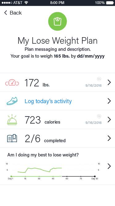 The concept going forward was to create a consumer-facing application that aimed to help users engage with and care about their health. The primary objective was to get users to complete recommended 'health actions' which would in turn lead to better health outcomes.